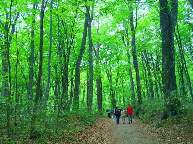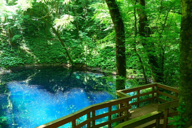 白神山地周辺にある十二湖はアクセスもしやすく人気です。特に青池は、その美しさから有名になっていますね。こちらは初心者でも楽しめます。