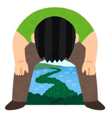体をかがめて、自分の股の間から逆さまに景色をのぞき込むやつです。